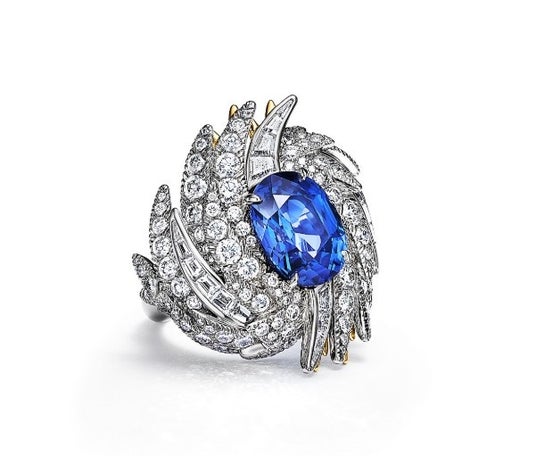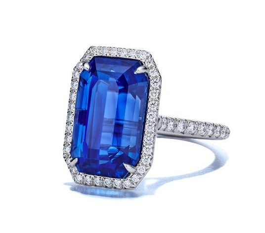 Ring in platinum with an unenhanced sapphire of over 10 carats and diamonds