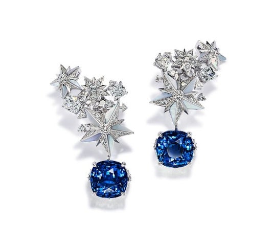 Earrings in platinum with unenhanced esteemed sapphires of over 27 total carats and diamonds