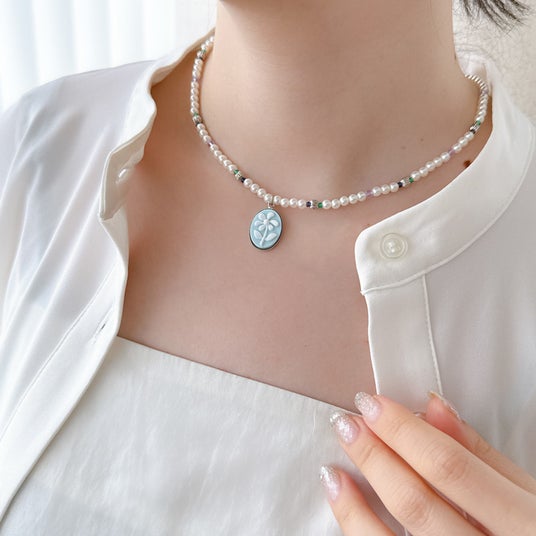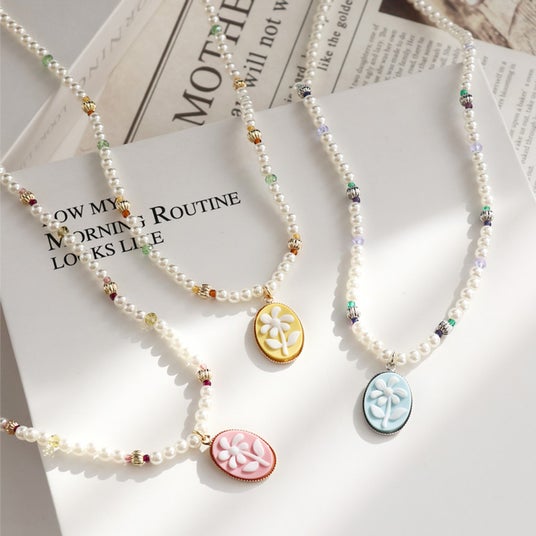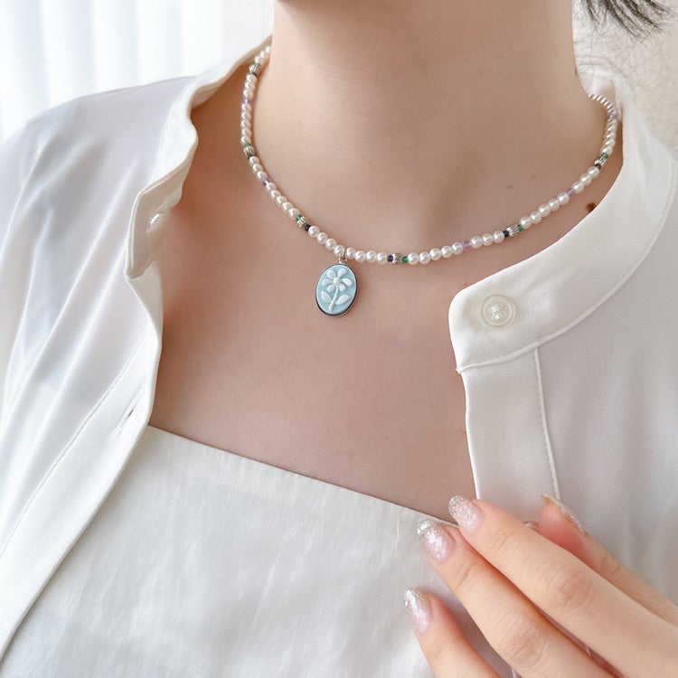 商品名:フラワーカメオ風パールネックレス