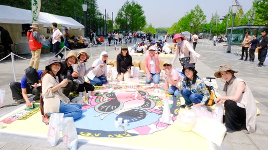 スペシャルゲストを招き、参加者とともに作品の完成を祝うセレモニーを実施。多くの人々の手によって創り上げられた花絵が完成する瞬間を共有し、共創の喜びと達成感を分かち合います。