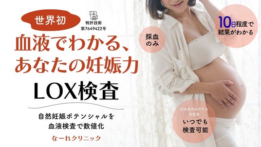 医療法人曙光会「天王寺駅前婦人科なーれクリニック」(大阪市天王寺区/院長:辺見貴至)はこの度、血液中の老化細胞(LOX細胞)の割合を測定し「自然妊娠ポテンシャル(妊娠力)」を7段階で評価する、妊活のための新しい検査「LOX検査」を導入いたします。