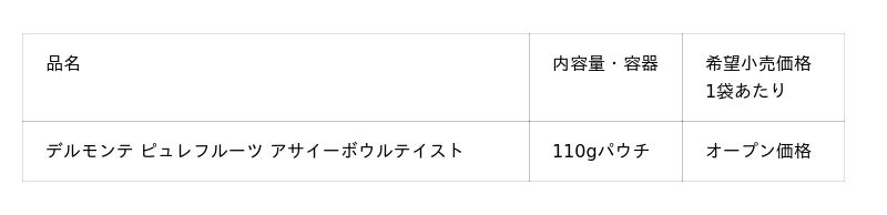 キッコーマン食品株式会社は、4月14日に、「デルモンテ ピュレフルーツ アサイーボウルテイスト」を全国のセブン-イレブン(*2)で限定発売します。