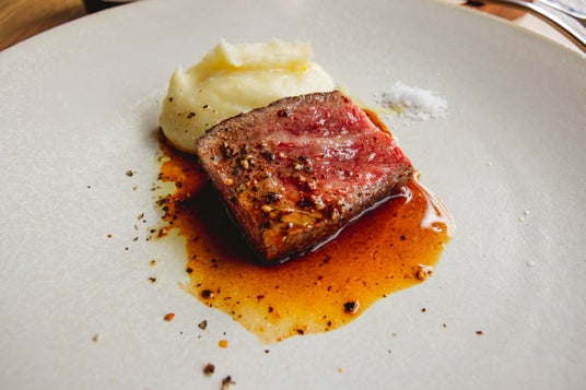 専用庫でじっくりと時間をかけ旨味を凝縮させた自社熟成肉。薪火特有の強い火力で外はカリッと、中はジューシーに焼き上げた、10年の集大成とも言えるメインディッシュです。