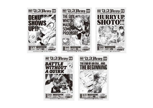 作中の主人公・デク(緑谷出久)たちの激闘の瞬間を切り取ったタブロイド風ステッカーをプレゼント!