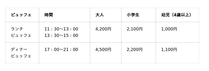 ※各ビュッフェともに3歳以下は無料です