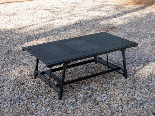 「アルミユニットテーブル」は、「Alpen Outdoors」ブランドを代表する人気商品で、これまでに累計6万台以上を販売しています。天板の一部を取り外してバーナーやコンロをセットできるなど、キャンプスタイルに合わせた自由度の高いカスタマイズ性が特長です。ソロからファミリーキャンプまで幅広く対応する「88」と「110」の2サイズを展開しています。