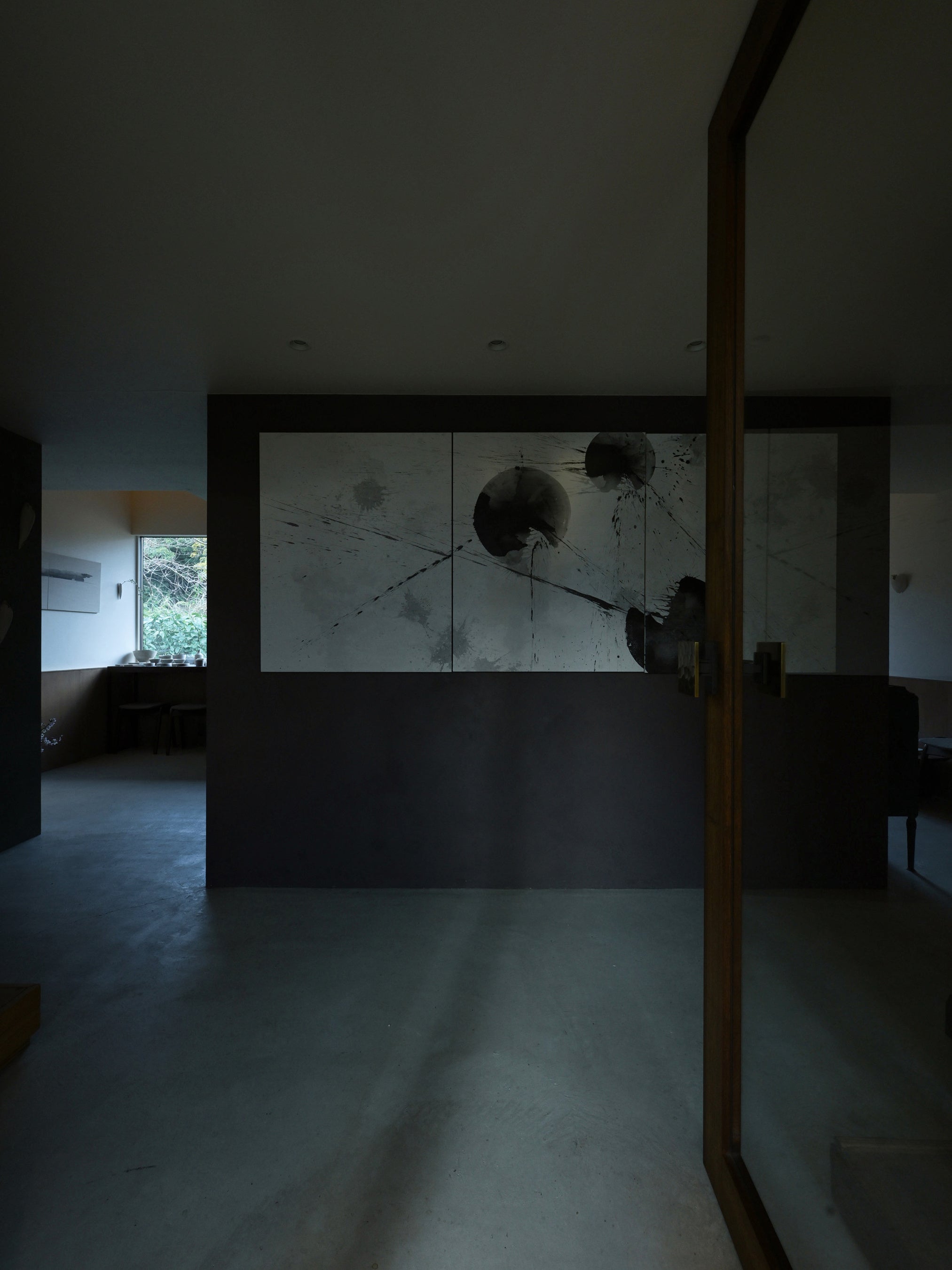 「美術館のような空間に住まう」をテーマに設計されたオーナーの自邸の1階スペースを使い、ヨーロッパのアンティーク家具や民藝家具を設えた空間で、主に若手アーティストの企画展を開催しています。建築デザインは国内外のAWARDで受賞しています(※)。
