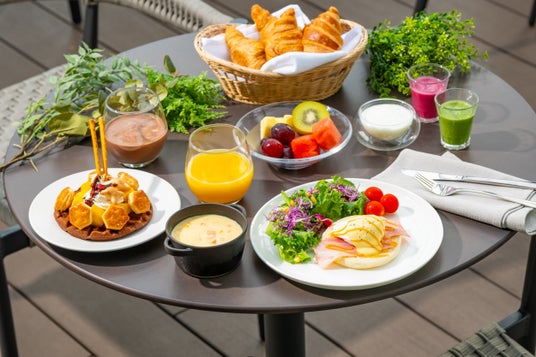 3.ホテルの朝食ビュッフェで栄養チャージトレーニングと組み合わせて、健康と美を意識した朝食ビュッフェで栄養を補給するのがおすすめです。「エッグベネディクト」や「カカオ入りカレー」をはじめ、和洋のメニューや新鮮な野菜、フルーツをお楽しみいただけます。