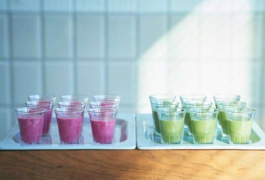 「ビーツの甘酒スムージー」(写真左)と「小松菜の甘酒スムージー」(写真右)