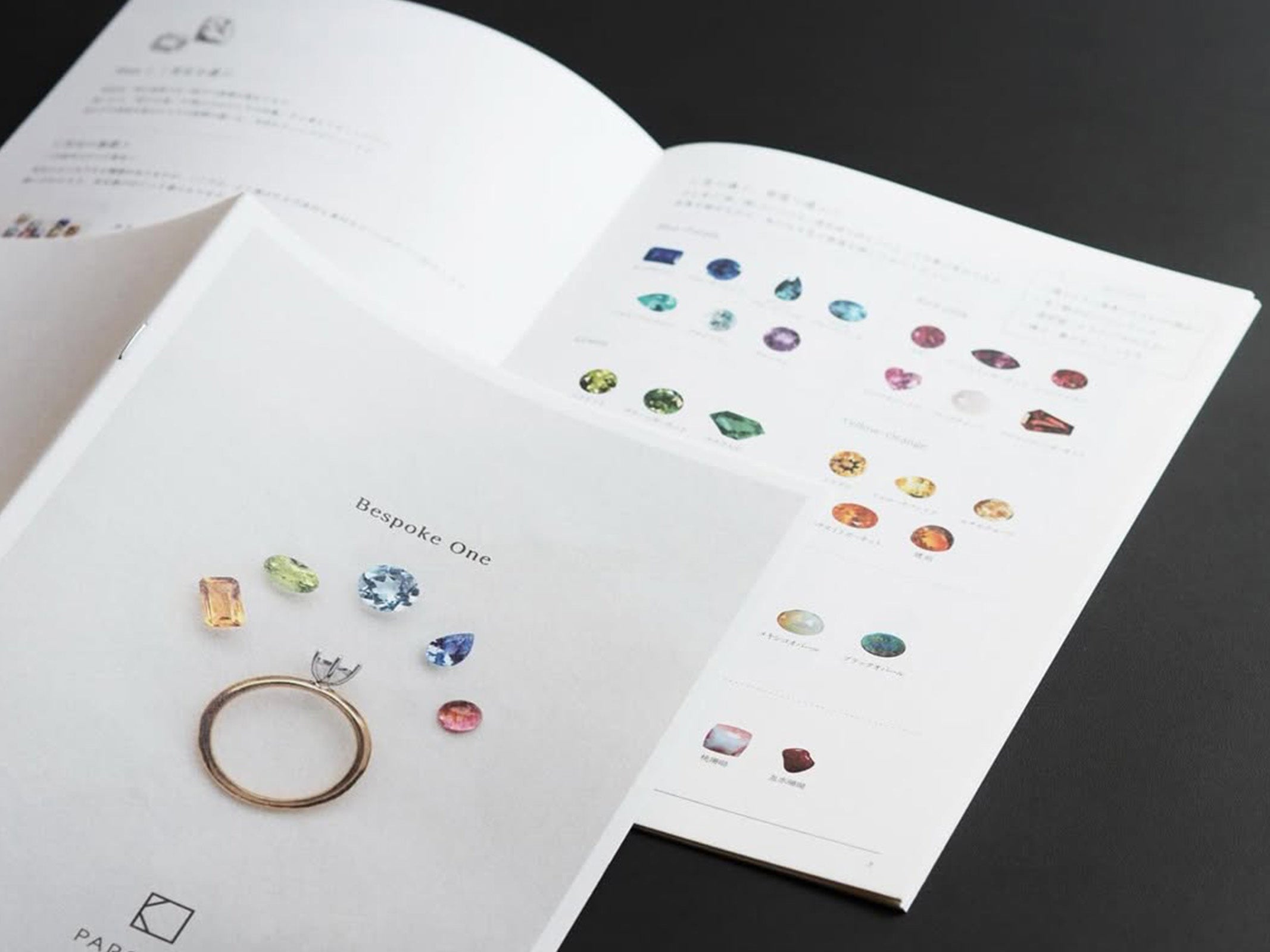 「Bespoke One」には、宝石の選び方やカットの違い、仕立てのポイント、オーダーの流れまでをわかりやすく掲載しております。はじめてオーダーをご検討される方にも、イメージをふくらませながらご覧いただける内容です。
