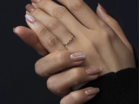 細身のアームに5ピースの宝石を端正に配したLuce。すっきりとした佇まいのなかに、それぞれの色が軽やかなリズムを奏でるリングです。