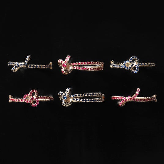 これまでダイヤモンドを中心に展開してきたNature(ナチュール)では、今回のTRUNK SHOWに向けて、ルビーとブルーサファイアのみで仕立てた新たなデザインをご用意いたしました。風になびくリボンを思わせるやわらかな輪郭に鮮烈な色彩を重ねることで、繊細さのなかに芯を感じさせる佇まいに仕上げております。
