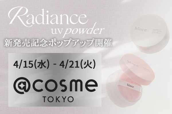 hince、@cosme TOKYOにて期間限定POP-UPストアを開催 “光をまとい、肌になじむ”ラディアンス体験を提案