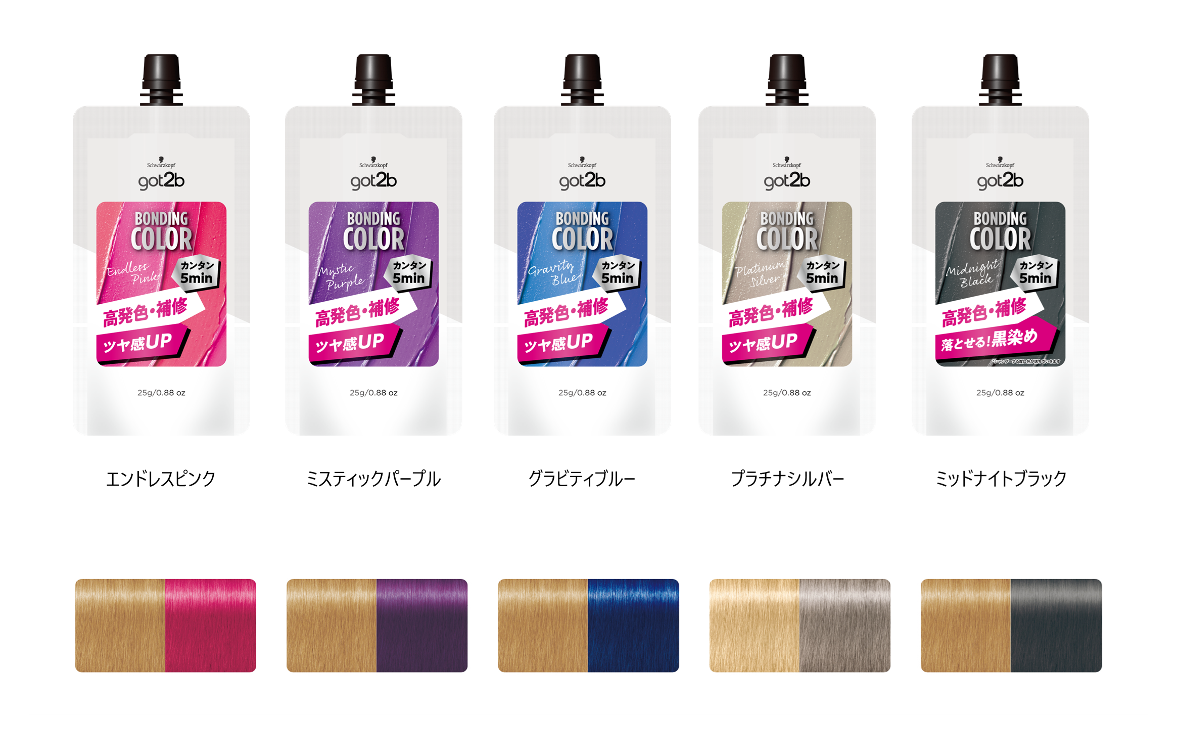 セルフでも気軽にブリーチヘアを楽しんでもらいたいという思いのもと欧米で生まれたgot2bは、ダメージレスを追求しながら、なりたい自分を表現できるブリーチオンカラー売上No.1*1のヘアコスメブランドです。サロンの技術や知見をホームケア製品に取り入れ、ブリーチ剤・カラー剤・ヘアケアまで、ダメージから髪を保護・強化*2する「ボンディング・テクノロジー」を搭載したさまざまな製品を展開しています。