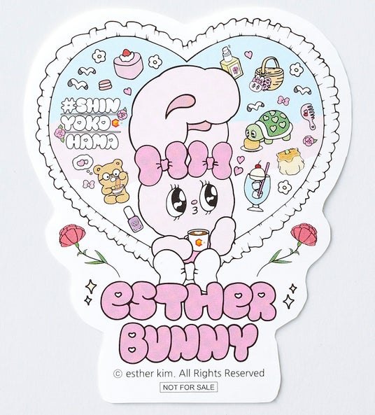 期間中、対象店舗にて1会計税込3,000円以上(合算不可)お買い上げのお客さまに、エスターバニーのオリジナルステッカーをプレゼントします。ステッカーは第1弾・第2弾の2回に分けて配布し、館内の対象エリアごとに異なる4種デザインをご用意しています。キュービックプラザ新横浜でしか手に入らない特別なノベルティです。◇第1弾◇