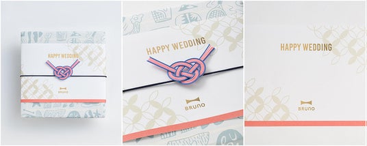 BRUNOが新たに提案するオリジナル水引きラッピングは、日本の伝統的な結びの文化にBRUNOらしい遊び心を掛け合わせた、華やかで記憶に残る特別な仕様。それぞれのデザインには贈る相手やシーンに応じた縁起の良い意味が込められており、大切な人へのギフトをいっそう印象的に演出します。■デザイン1. HAPPY WEDDING(あわじ結び)