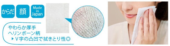 ヘリンボーン柄の凸凹で拭き取りやすく、さらさら素肌に。