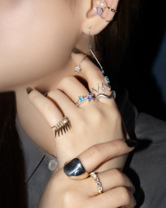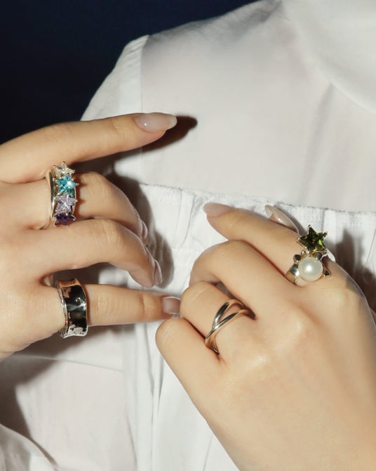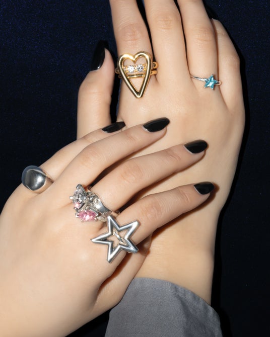 今回、関西店舗に初上陸する新デザインは星座を思わせるフォルムのリングや、2つのスターモチーフが寄り添うリングなど。