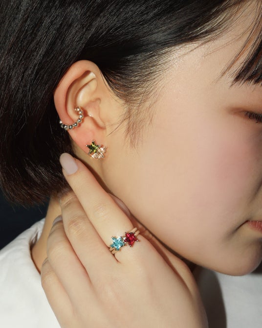 また瞬く星を集めたようなイヤーカフは、1つのストーンをアクセントカラーとしてセレクトできます。