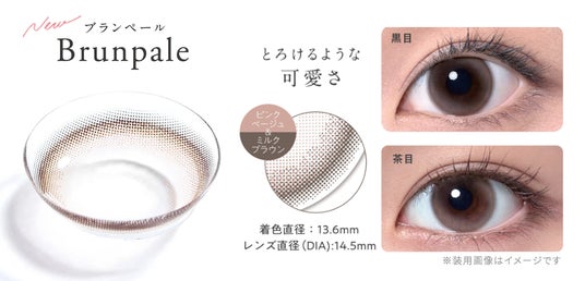 ◆ブランペール(Brunpale): ピンクベージュのグラデーションデザインが瞳に溶け込み、ツヤ感と立体感をアップさせます。瞳を綺麗にトーンアップさせたい方に、おすすめのブラウン系レンズです。