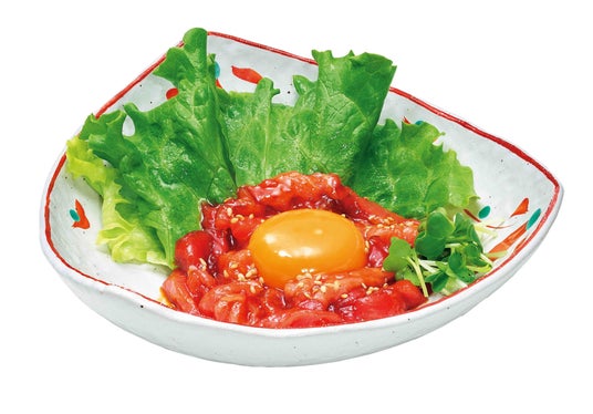 厳選した本まぐろを自家製の特製ユッケダレに絡め、とろりとした卵黄をトッピングした贅沢な一皿です。
