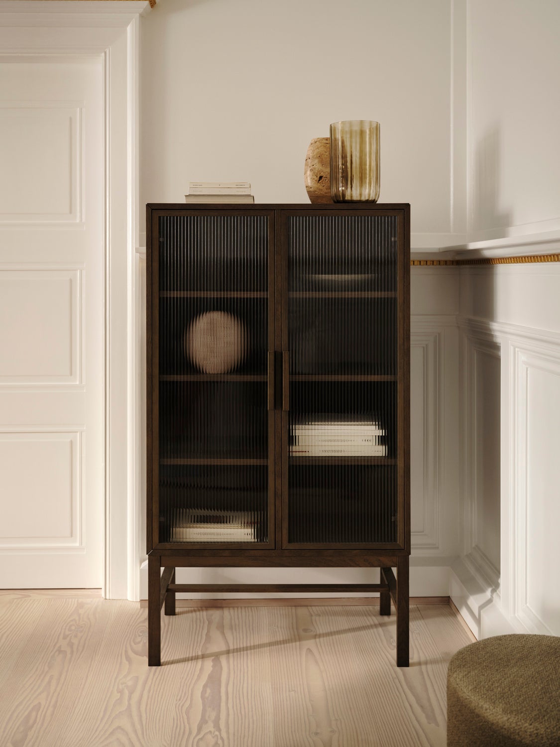 「フォルムはシンプルで建築的。一方で、柔らかなガラスや温もりのある木が感情を添えます。時代に左右されないプロポーションは、暮らしとともに変化し、住まいの空気感を静かに形づくっていきます。」
