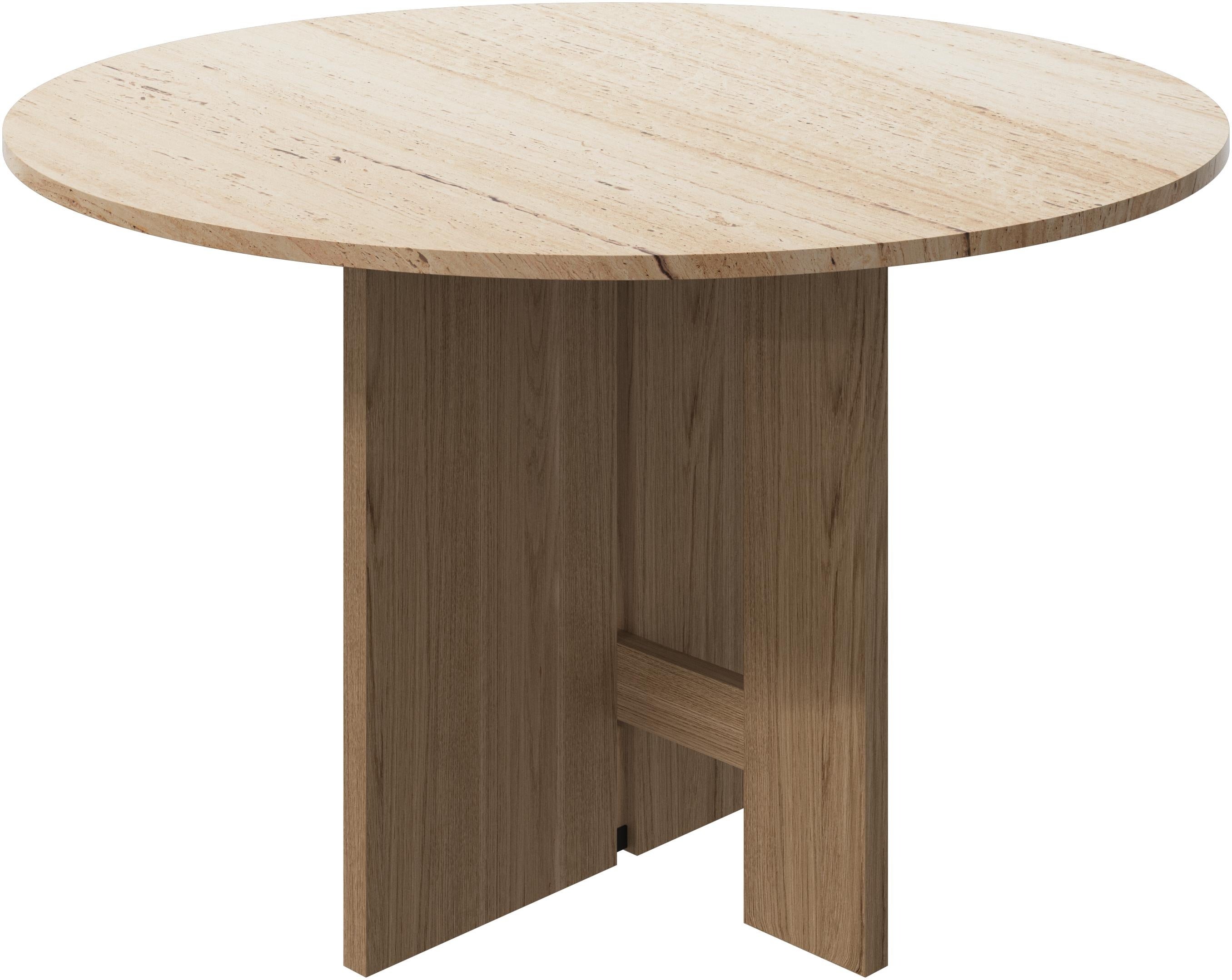 H74.5 x Ø119.0cm 天板:トラバーチン 脚:ダークオーク・ナチュラルオーク