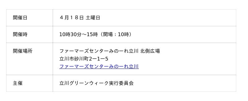 立川グリーンウィーク2026緑化まつり -4月18日(土)に開催