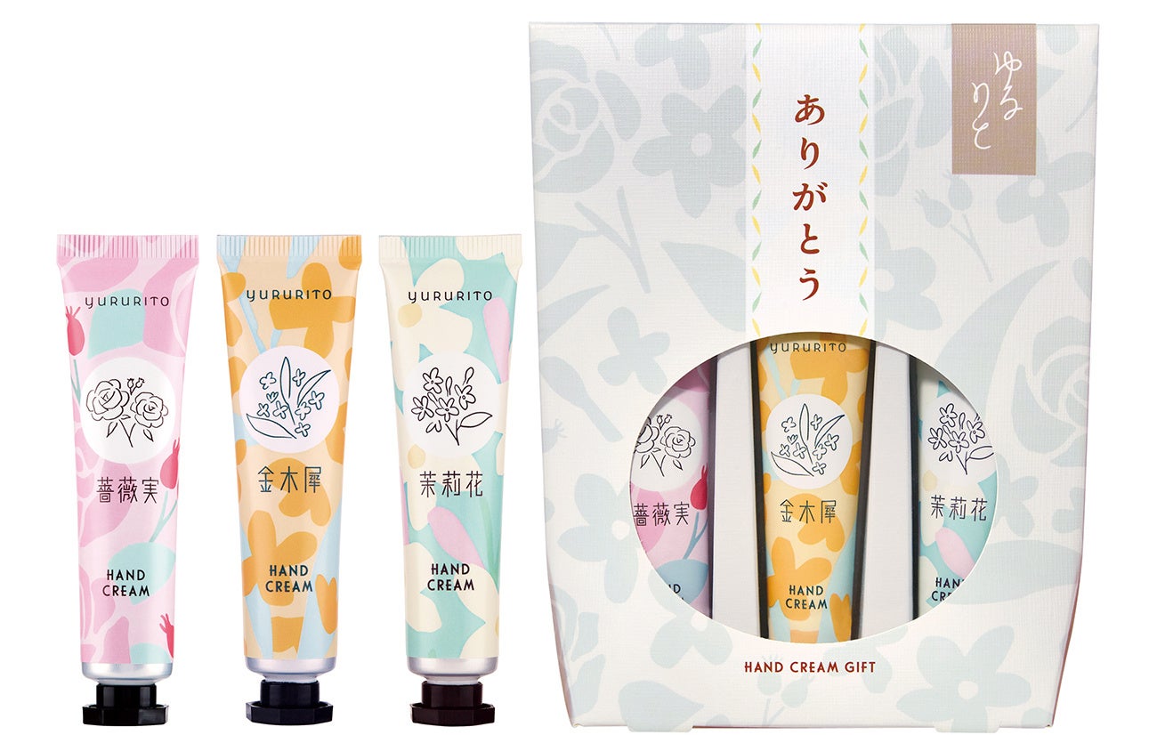 3種の花々の香りを楽しめる「ゆるりと ハンドクリームギフト」も同時発売。母の日の贈り物にも。