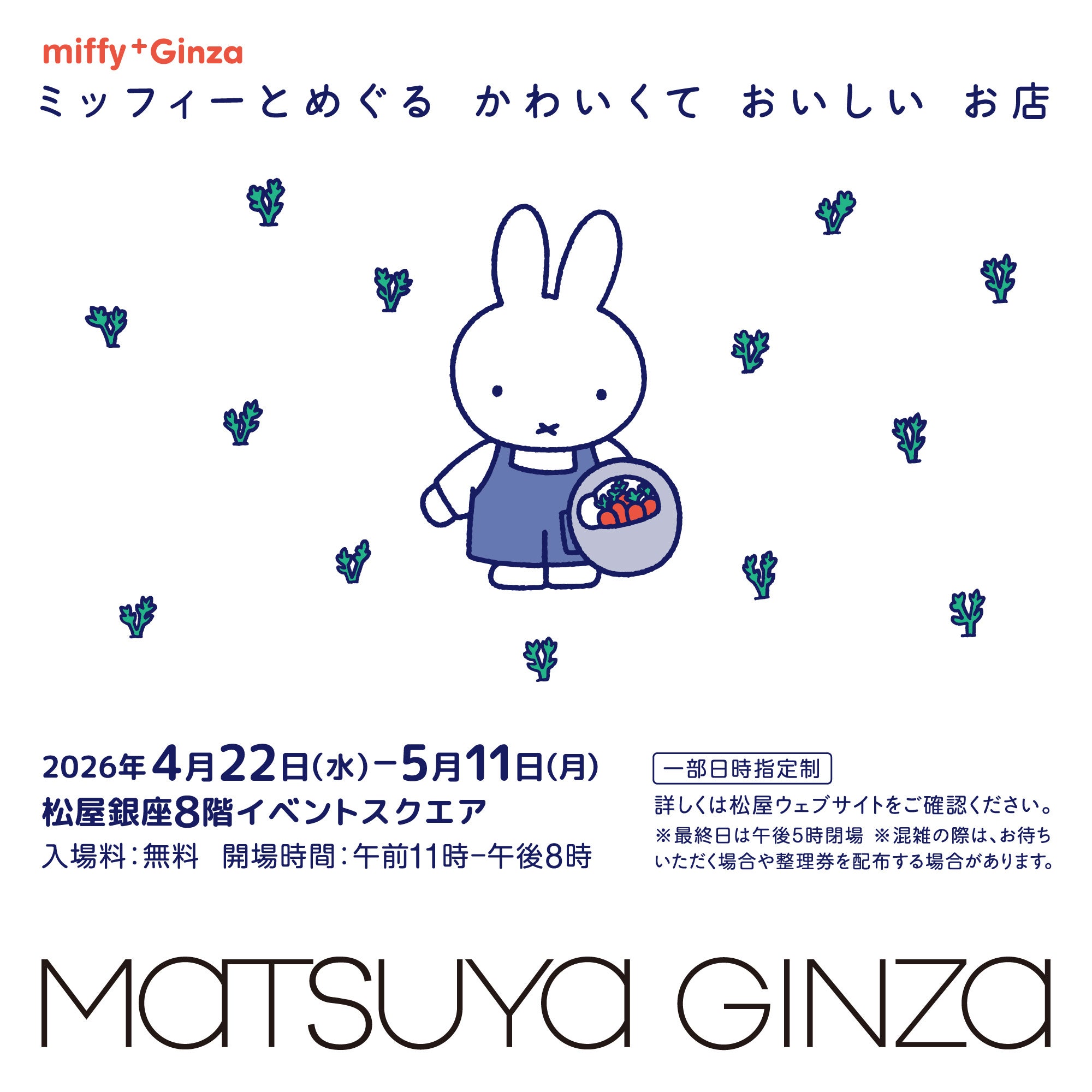 松屋銀座で、POP UP SHOP「ミッフィーとめぐる かわいくて おいしい お店 miffy⁺Ginza」が4月22日(水)から開催されます。 会場は一部日時指定制で、現在ライブポケットにて入場申込を受付中です。本リリースでは、POP UP SHOP概要、入場方法などを紹介いたします。