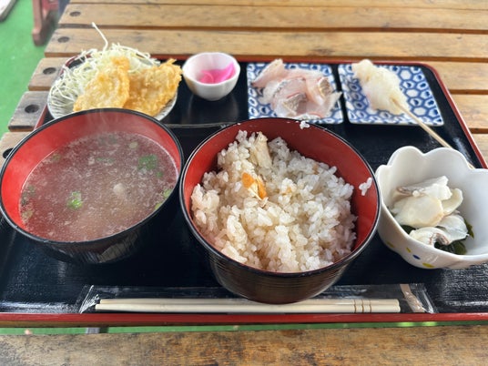 岡田浦漁港直送の桜鯛を贅沢に使用した「泉南桜鯛定食」(税込1,980円)を数量限定で提供します。内容:鯛めし、鯛汁、鯛の串焼き、鯛の天ぷら、鯛味のわかめポン酢、鯛の造り