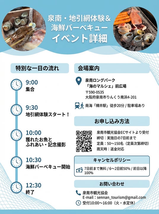 今回スタートする「週末・海の旬ごちそうプロジェクト」と「地引網体験×海鮮バーベキュー」は、こうした準備と検証を経て生まれた取り組みです。泉南ならではの「海・漁・食」の魅力を通じて、訪れる人にも地域事業者にも持続的な価値を生み出していきます。