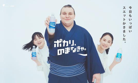 CMは「四股をふむ」篇、「すり足」篇、「ヒトの60%」篇の3篇で構成され、それぞれ異なる切り口から「ポカリ、のまなきゃ。」というメッセージを届けます。ユーモアたっぷりで笑いが絶えない3人の対談企画にもご注目ください。