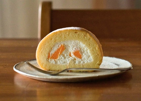5.生地を端から一気に巻き上げ、冷蔵庫で30分ほど馴染ませてからカットします。