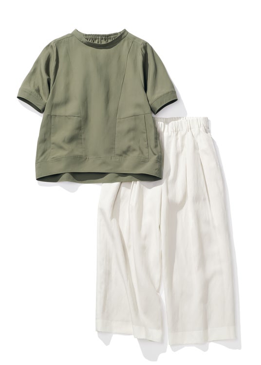 旅はもちろん特別な日のコーデにも映える美脚パンツ。優美なドレープ感と、シワになりにくい素材を活かしたセミフレアシルエットが脚長効果を演出します。放送日時は4月13日(月) 0:00~、8:00~、22:00~です。