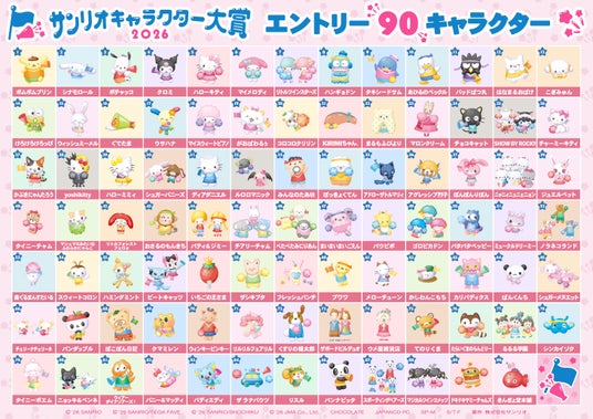 サンリオの機関紙「月刊 いちご新聞」で1986年にスタートした「サンリオキャラクター大賞」は、450を超えるサンリオキャラクターの中から選ばれたキャラクターがエントリーし、投票数によって順位を決定する人気投票イベントです。今年は、90キャラクターがエントリーします。最終結果は6月28日(日)にパシフィコ横浜で開催する「サンリオフェス2026 in みなとみらい」のDay2のステージにて発表します。今年のテーマは、「がんばるみんなにエールを!Smiling Ovation!」。 「Smiling Ovation(スマイリングオベーション)」は、スタンディングオベーションから着想を得た造語で、サンリオキャラクターとファンのみなさまが互いに応援し合い、讃え合いながら笑顔になれるイベントにしたいという想いを込めています。
