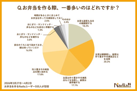 【2026年春のお弁当作りアンケート調査】「朝フル調理」派はわずか18%!“頑張りすぎない”ハイブリッド型が主流