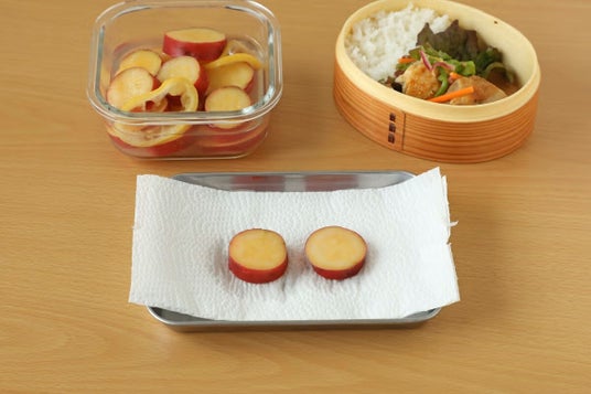 水分が多いと菌が繁殖しやすくなります。汁気の多いおかずは、ペーパータオルなどで水気を拭き取ってからお弁当に詰めます。