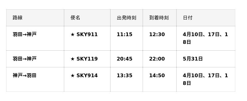 ■2026年4月/5月『羽田=神戸』線、『神戸=羽田』線臨時便一覧