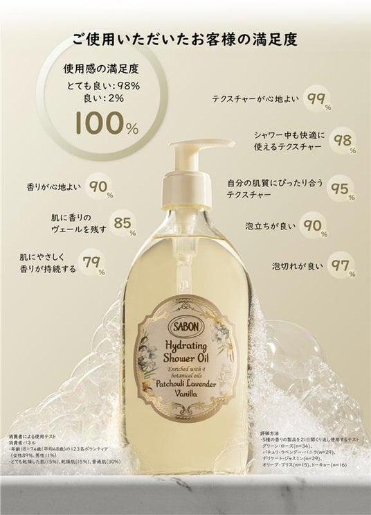ナチュラルコスメブランドSABON(サボン)は、2026年4月23日(木)「ハイドレイティング シャワーオイル」を新発売いたします。使用直後から認められる保湿効果と、使えば使うほどに潤いがアップする新世代のボディ洗浄料です。