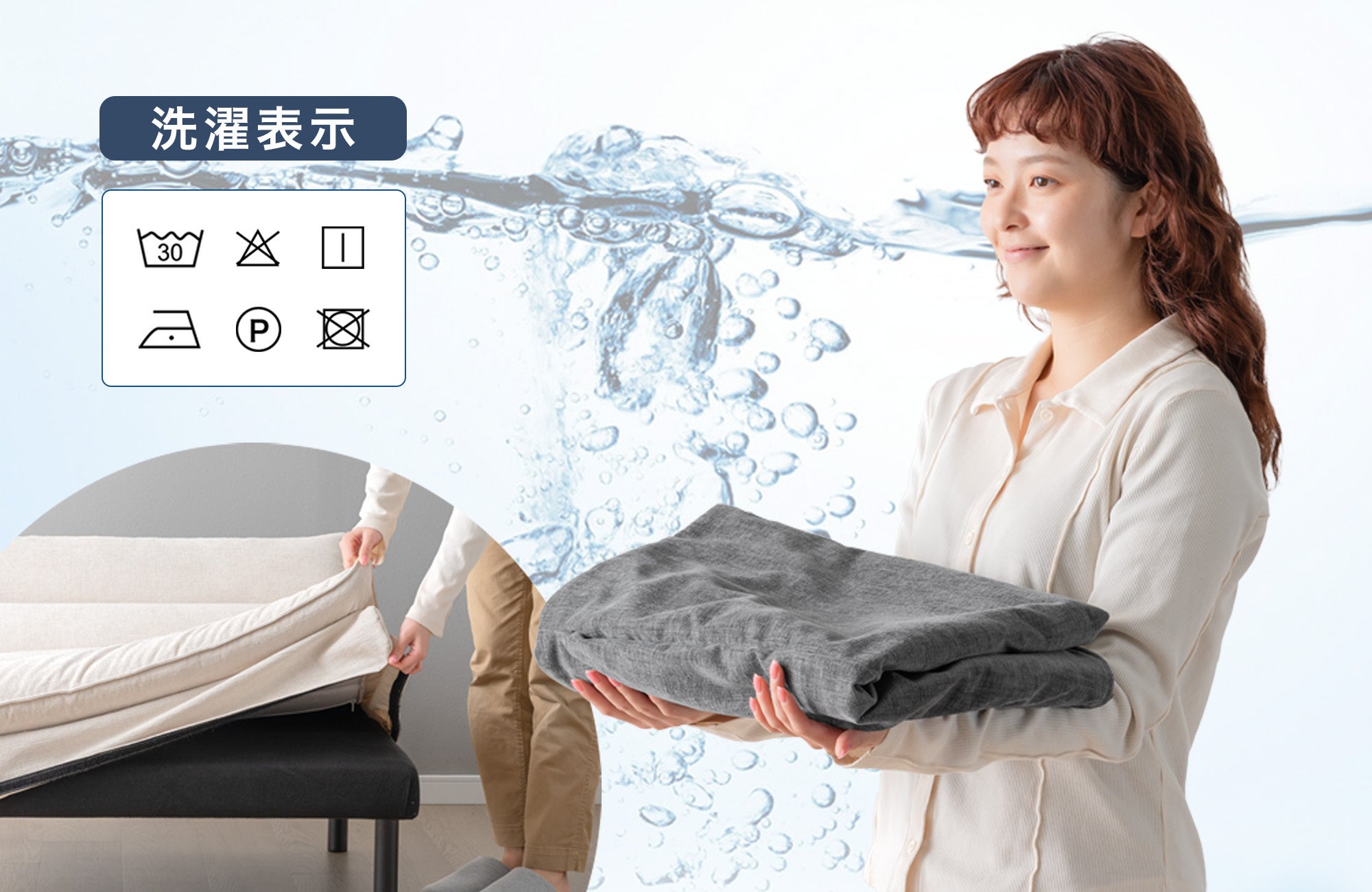 『4WAYソファベッド』のカバーは本体から取り外しができるため、汚れても簡単に洗えるようになっており、清潔にご使用いただけます。