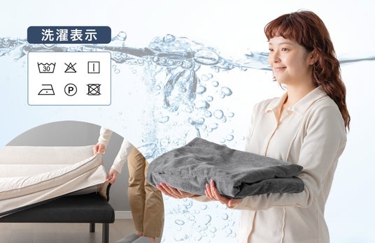 また、カバーはオールシーズン使用できるファブリック生地となっており、夏はむれにくく、冬はひんやりしにくいため、季節を問わず快適にご使用いただけます。