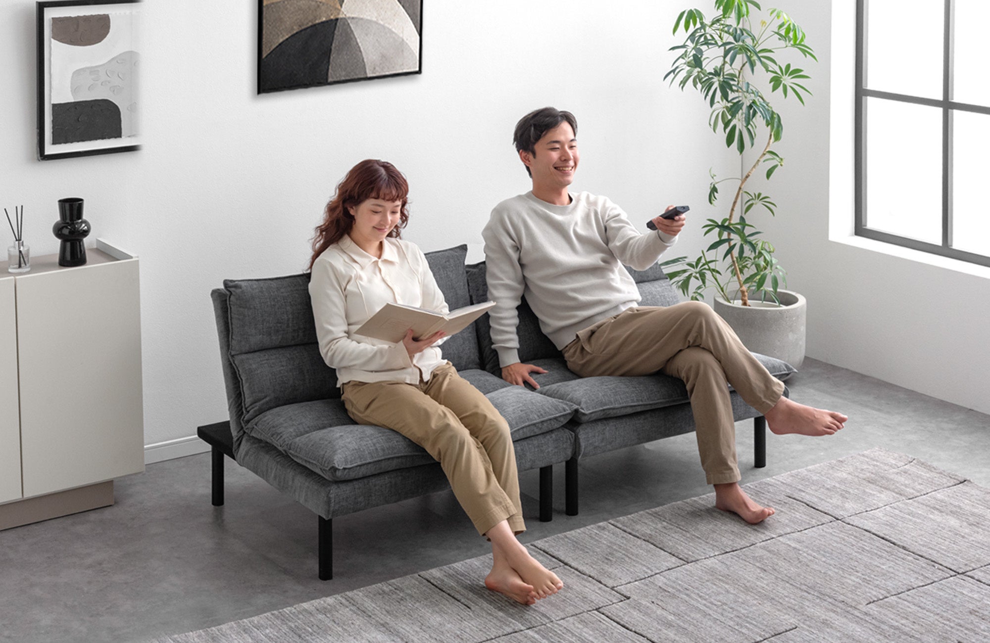 【タンスのゲン】一人暮らしや同棲カップルの理想を叶えるマルチスタイルソファが登場独立リクライニングとセパレート設計が暮らしのあらゆるシーンに柔軟にフィット