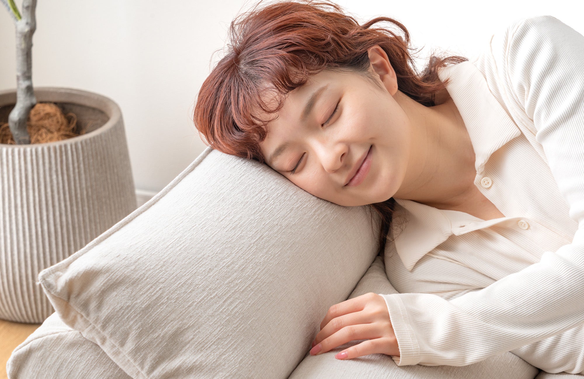 背もたれを浅く起こすことで枕として活用できるため、一人で全身を預けてゆったりと体をリラックスしたいときや、お昼寝の際もより楽な体勢でお休みいただけます。