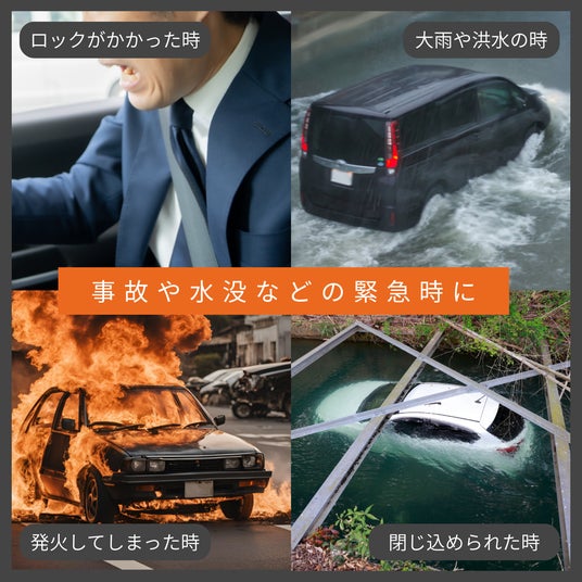 しかし、通勤・通学、買い物、子どもの送り迎え、帰省やレジャーなど、日常のさまざまな場面で車を使用する人にとって、車内での緊急事態は決して他人事ではありません。事故によってドアが開かなくなるケースや、突然の豪雨による冠水・水没など、突発的なトラブルへの備えとして、車内に常備しておける安全ツールの必要性が高まっています。
