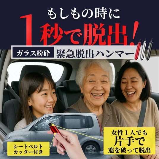 新生活のスタートにあわせて、防災用品や生活備品を見直す動きが高まる中、車内の安全対策グッズとして「脱出ハンマー&シートベルトカッター」が注目を集めています。事故や水没などの緊急時に、車内からの脱出をサポートする本製品は、初心者ドライバーはもちろん、子どもを乗せて移動する家庭や高齢者にも備えておきたいアイテムです。