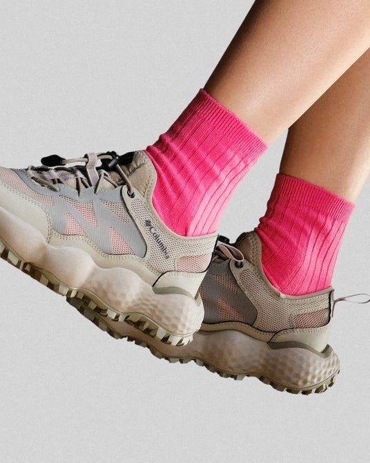 THRIVE REVIVE SHANDAL の最大の特長は、コロンビア独自のクッショニング「テックライトプラッシュ」を採用した波打つような肉厚フォルムのミッドソールと、トレイルシューズにも搭載しているアウトソール「アダプトトラックス」の採用です。優れたクッション性で足への負担を軽減し、濡れた路面や泥など、難しいコンディションでもグリップ力を発揮することで、「抜群のクッション性、驚きの歩き心地」を実現します。