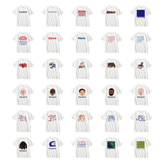 Standard Productsのブランドロゴをはじめ、過去の人気商品やパッケージからインスパイアされたデザイン、さらに今回初公開となる特別なアートまで幅広くラインアップ。これらを自由に組み合わせ、世界に一つだけのオリジナルTシャツなどを作成いただけます。