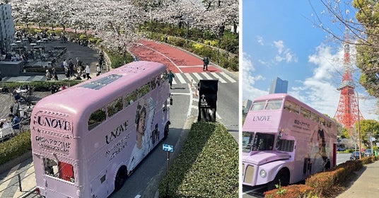 本イベントでは、桜色に装飾された特別仕様のアフタヌーンティーバスを舞台に、UNOVEのブランド世界観を体験いただける空間を創出しました。