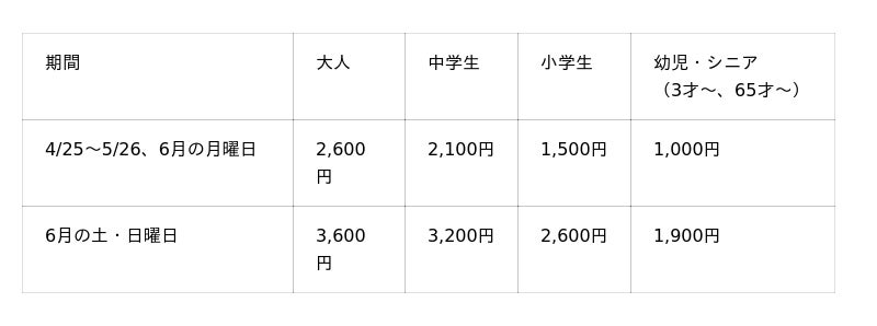※荒天や水温低下の場合は、短縮営業または中止とする場合もございます。最新情報は公式HPよ